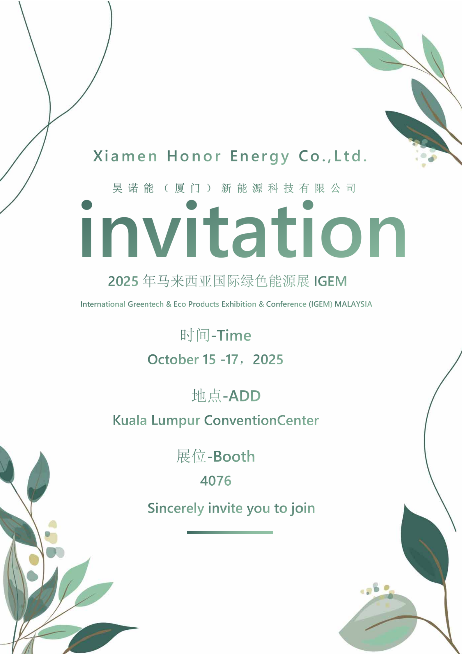 Bizimməmnuniyyətlə2025 Malayziya Beynəlxalq Yaşıl Enerji Sərgisi (İGEM) üçün sizə rəsmi dəvətimizi elan etmək.