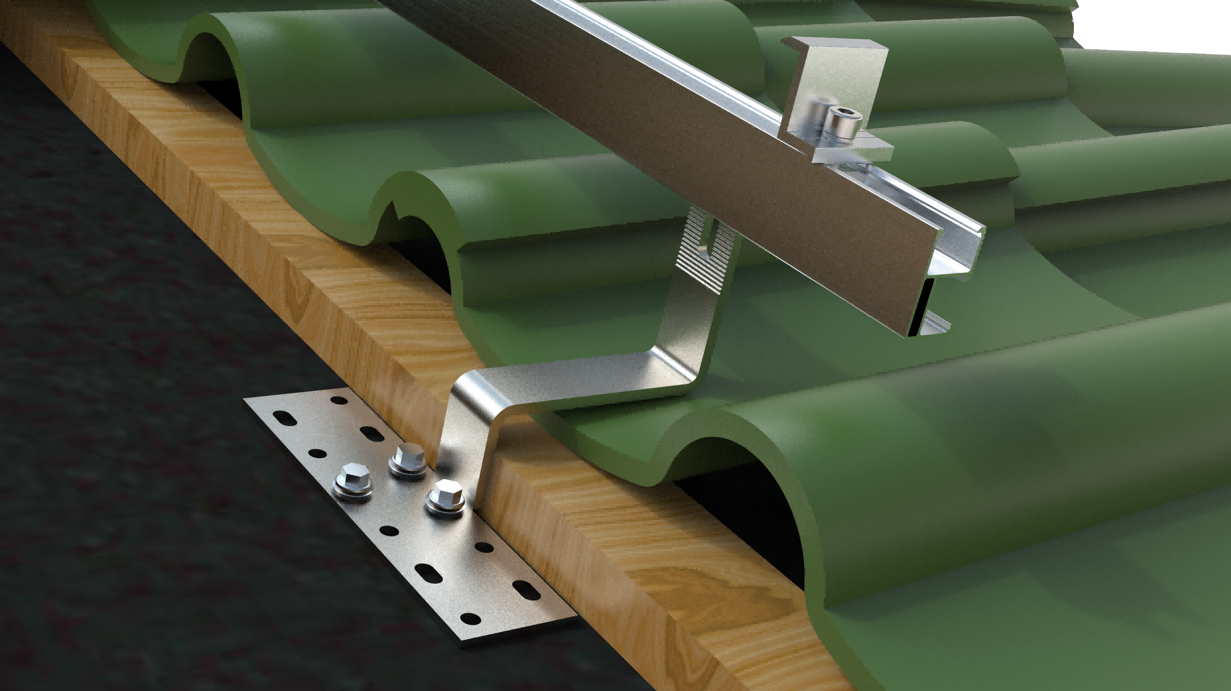Müxtəlif kafel damlarında təhlükəsiz günəş paneli quraşdırılması üçün nəzərdə tutulmuş çox yönlü və davamlı bir həll olan çini damlarında qarmaqlar istifadə edirik