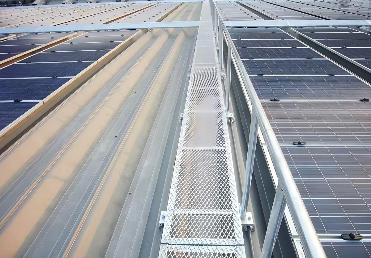 Günəş gəzintisi Günəş sisteminin daha yaxşı saxlanmasını asanlaşdırmaq üçün adətən quraşdırılmış son dərəcə çox istifadə olunan günəş komponentidir. Ayrıca, kadrların tez-tez hərəkət etməsi nəticəsində suya davamlı qat və ya dam sızmalarının qarşısını almaq üçün həsr olunmuş piyada yolları vasitəsilə yüklər paylayır.