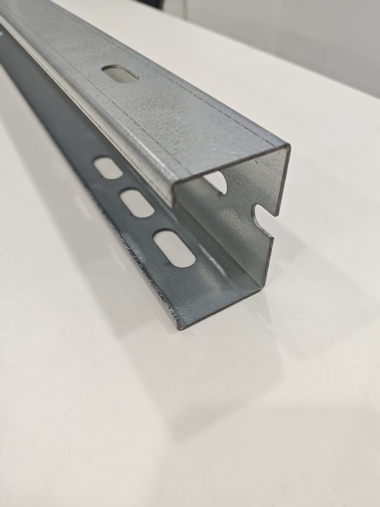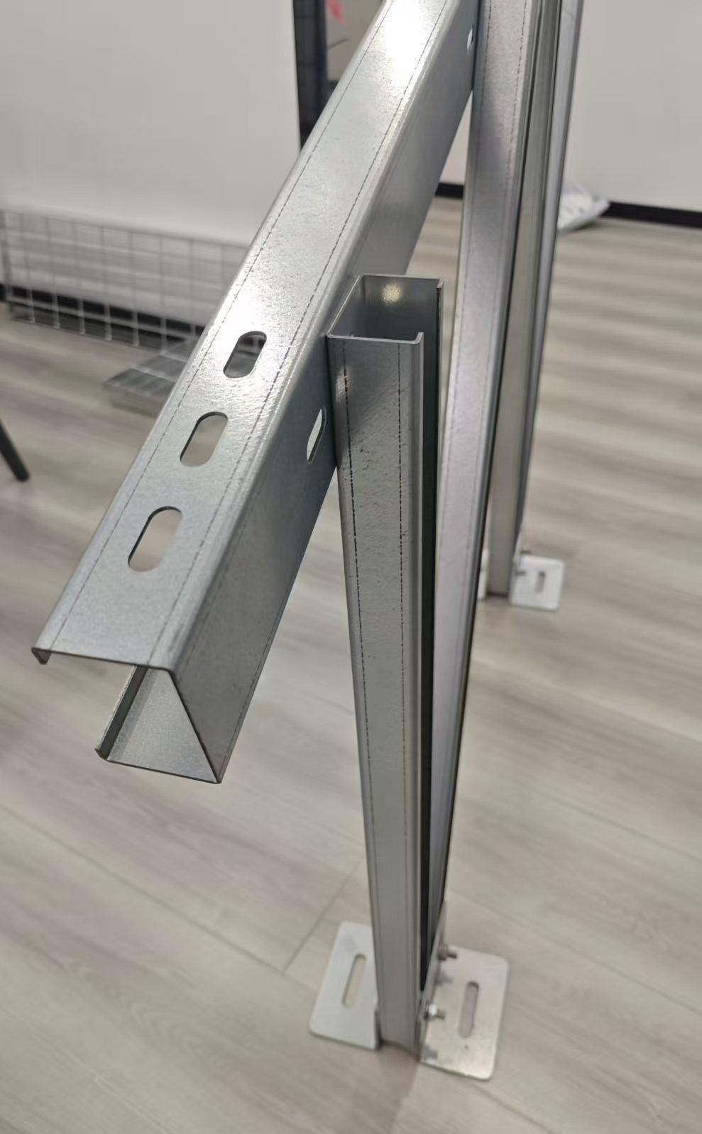Polad Günəş C tip relsləri yüksək güclü karbonlu poladdan hazırlanmış və isti daldırma müalicəsi verilmişdir. Ağır yüklər daşımaq, havaya qarşı durmaq və möhkəm dəyər təklif etmək üçün kifayət qədər sərtdirlər. Səth deşik naxış dizaynı ilə qarşılıqlı əlaqə qurmağa imkan verir və bununla da dəstək sisteminin əsasını təşkil edir.